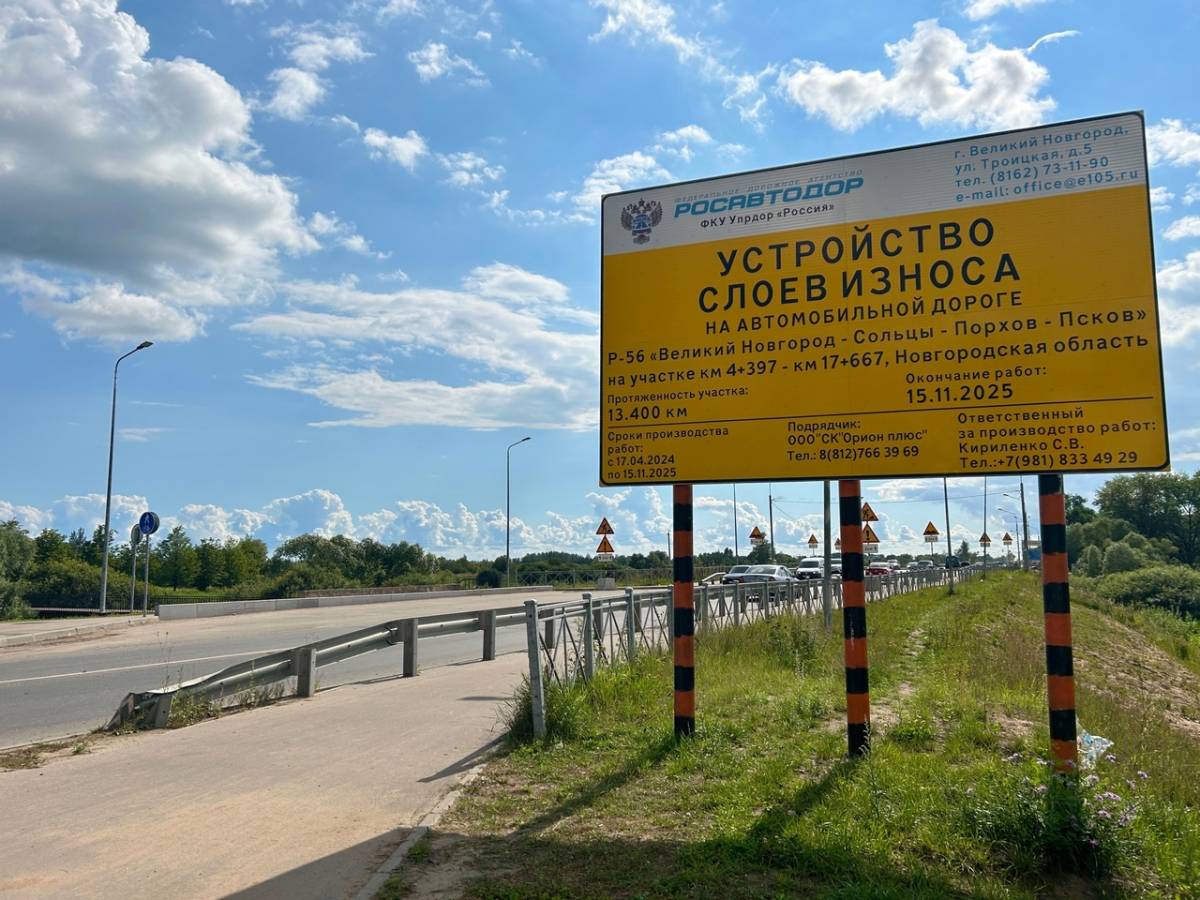Начато обновление участков дороги между Великим Новгородом и Псковом.