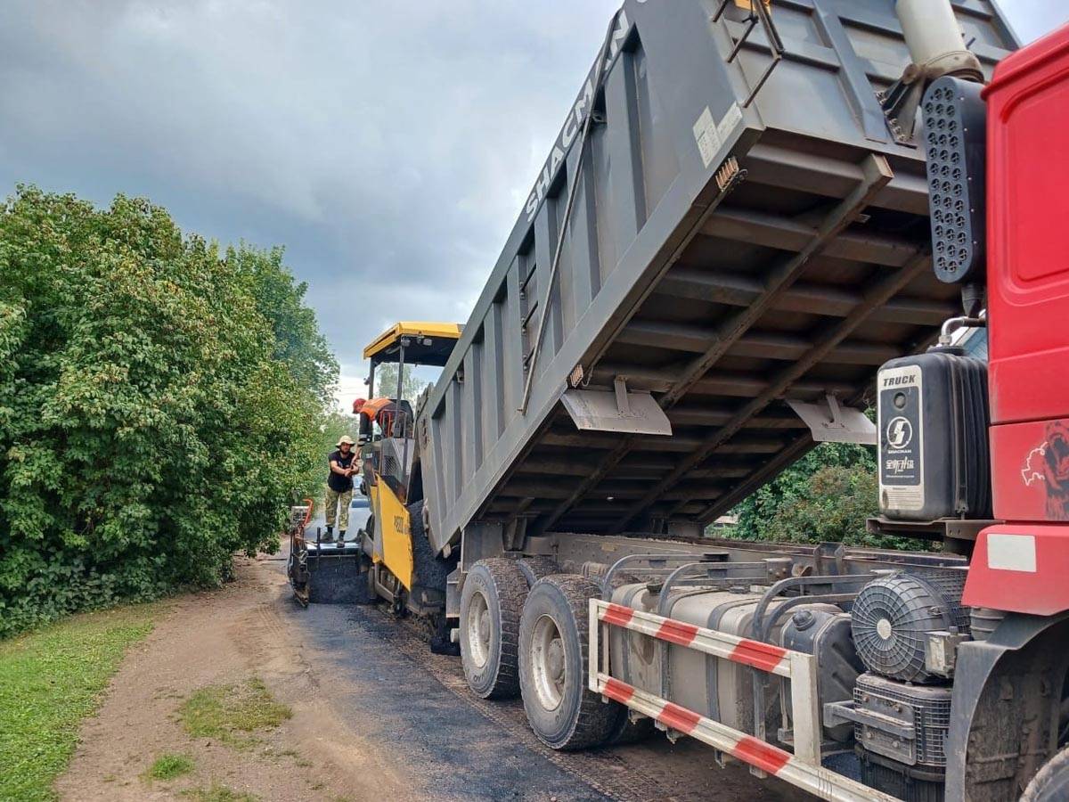 На дороге Поляны – Петровщина уже выполнены работы по фрезерованию существующего покрытия и устройству выравнивающего слоя.