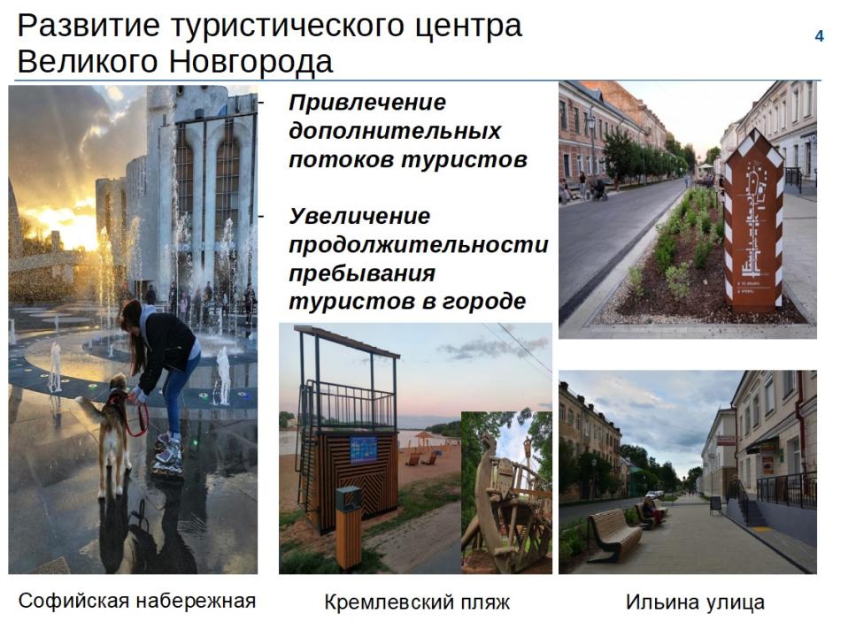 Развитие туристской инфраструктуры центра города влияет на рост числа туристов. Вырос коэффициент загрузки гостиниц (3 668 мест в 2022 году, 3 327 мест в 2019 году). По итогам первого полугодия загрузка гостиниц составила 58%. На территории города внедряется муниципальный туристский стандарт Новгородской области, который создает условия для качественного приема туристов. Великий Новгород продолжает вызывать интерес российского туриста, как индивидуального, так и группового.