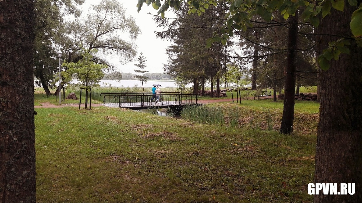 Сейчас на деревьях появились яблоки. Посетители музея под открытым небом уже могут увидеть и отреставрированный дом графини, а также пройти в беседку рядом с ним на озере Мячино.