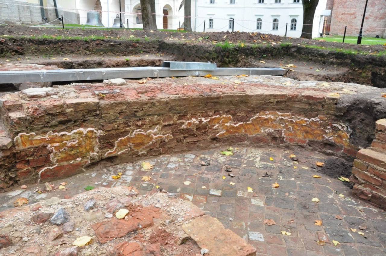 Как сообщили в министерстве культуры страны, уникальный образец монументального искусства был обнаружен в 2009 году при прокладке электрокабеля в новгородском кремле к югу от сохранившегося до наших дней здания церкви Входа Господня в Иерусалим 1759 года.