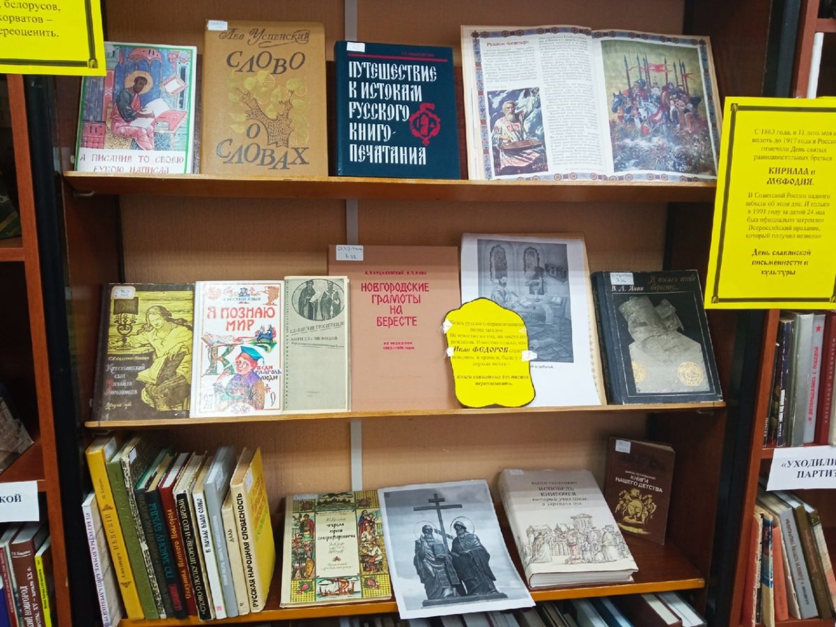 К Дню славянской письменности и культуры библиотека подготовила информационно-рекомендательный буклет «Славянские просветители: Кирилл и Мефодий», в котором кратко рассказывается о братьях Кирилле и Мефодии, а также составлен рекомендательный список литературы, которую советуем прочитать.