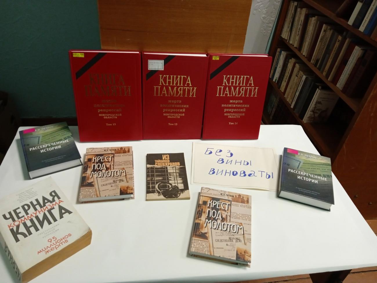 В память о жертвах политических репрессий в Зайцевской библиотеке оформлена книжно-иллюстративная выставка: «Без вины виноваты».
