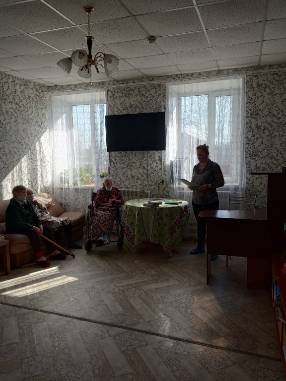 В рамках соглашения о творческом взаимодействии 14 апреля в стационарном отделении ОАУСО «Пестовский КЦСО» сотрудник межпоселенческой центральной районной библиотеки им.