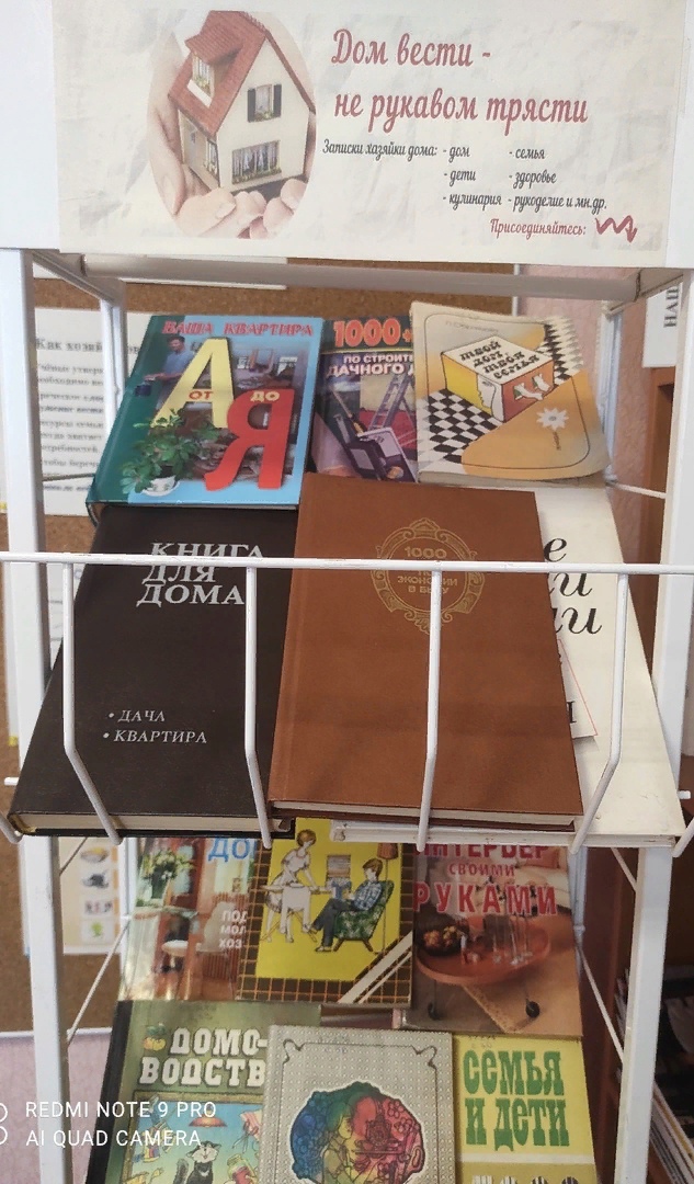 Наша выставка предлагает книги о том, как можно и нужно вести домашнее хозяйство, дает ценные советы по ведению быта, ремонту бытовой техники, идеи для рукоделия, кулинарии и цветоводства, учит тому, как своими руками создать потрясающие вещи для красоты и удобства, а также многому другому, что интересно современной хранительнице семейного очага.
