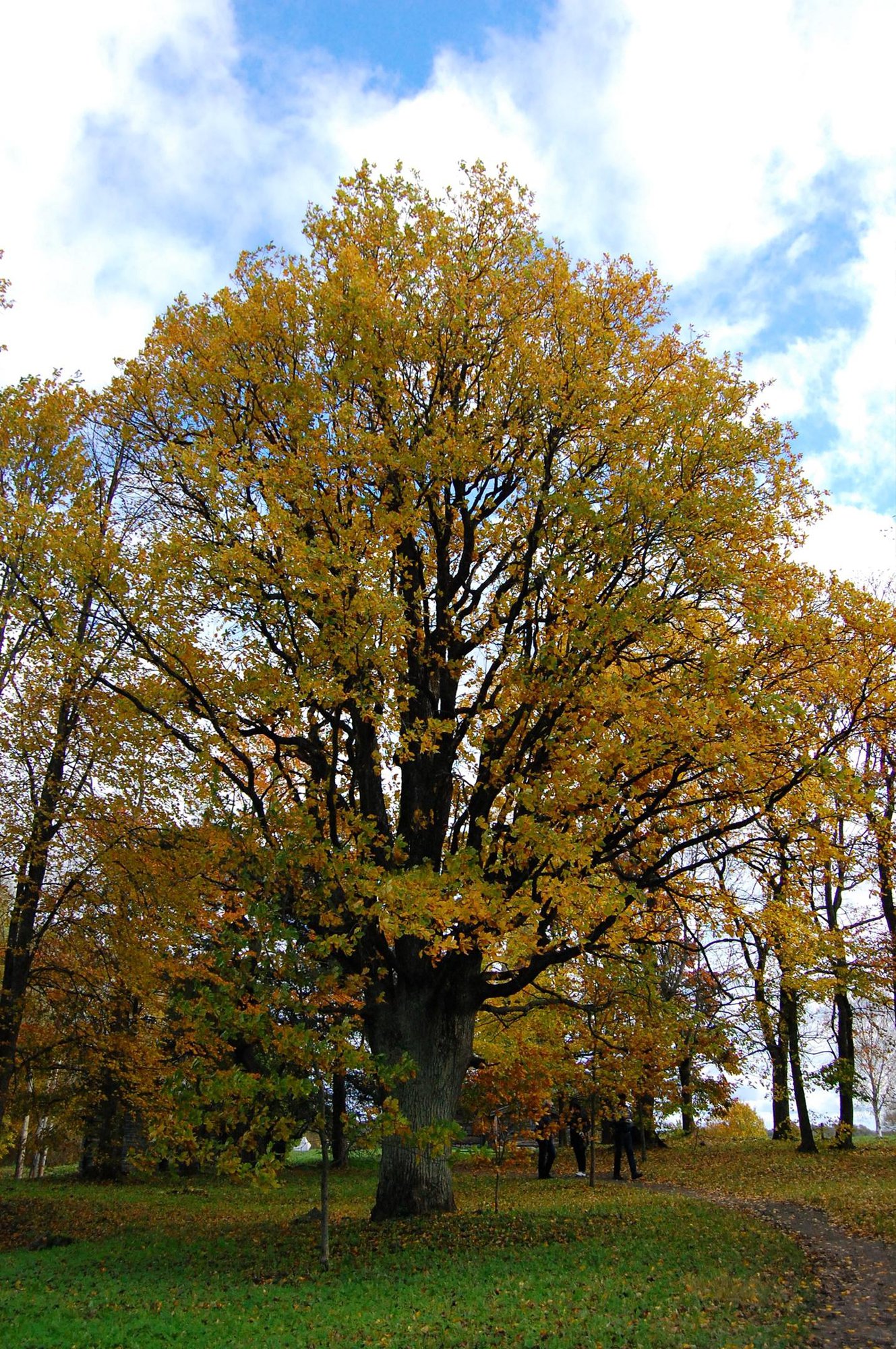 Специалисты определили, что дереву как минимум 217 лет. На карте 1819 года отмечена целая дубовая аллея в районе усадьбы, которую впоследствии приобретет графиня Анна Орлова-Чесменская. Знаменитая владелица наверняка гуляла по этой аллее. В годы Великой Отечественной войны старые деревья, кроме двух, погибли, поскольку здесь проходила линия фронта.
