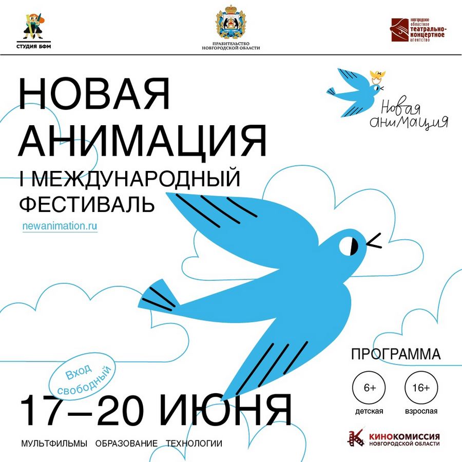 С 17 по 20 июня в Великом Новгороде пройдет I Международный фестиваль «Новая анимация», в рамках которого на 10 городских площадках состоятся показы российских и зарубежных мультфильмов, мастер-классы для детей,