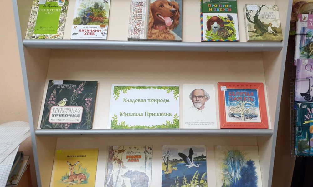 На детском абонементе библиотеки «На Державина» открылась книжная выставка «Кладовая природы Михаила Пришвина» .
