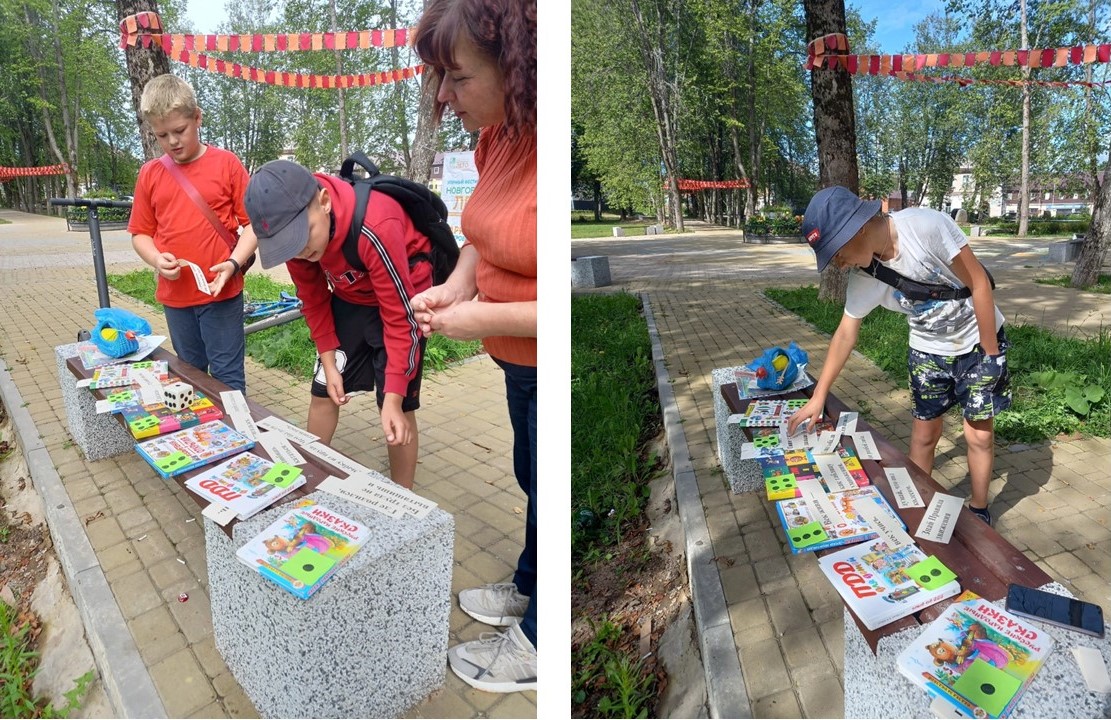 Сегодня в Екатерининском сквере сотрудники Детской и Центральной районной библиотек провели игру - викторину «Книжка в траве» в рамках проекта Губернатора Новгородской области «Новгородское лето».
