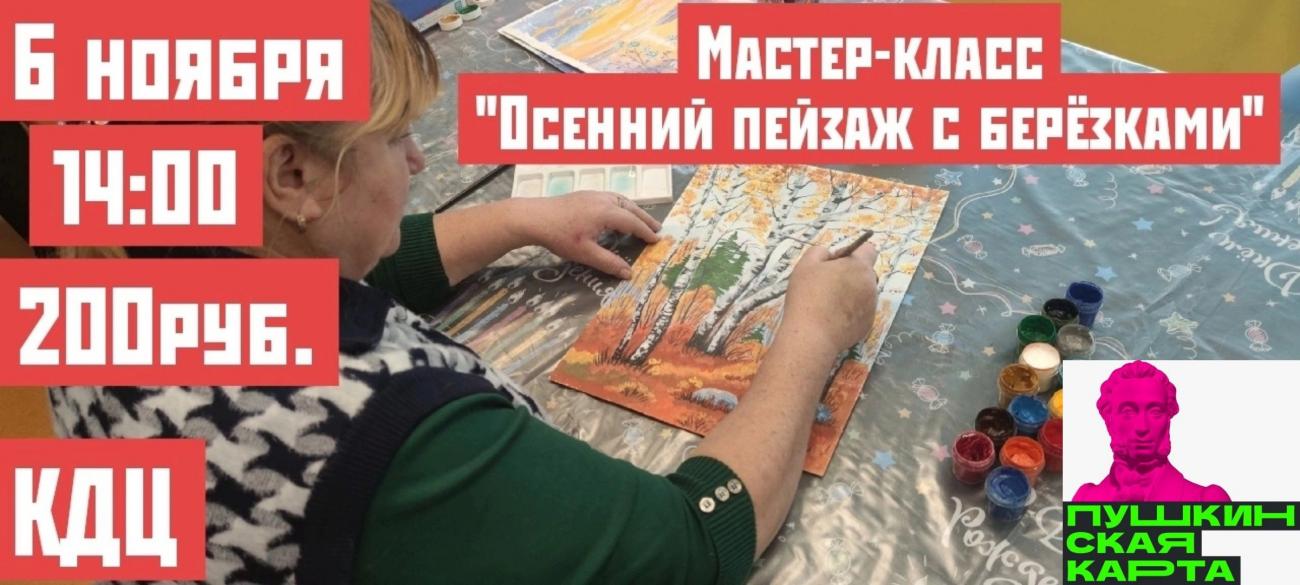 6 ноября в Культурном досуговом центре ждут всех желающих в 14:00 на мастер-класс «Осенний пейзаж с берёзками».