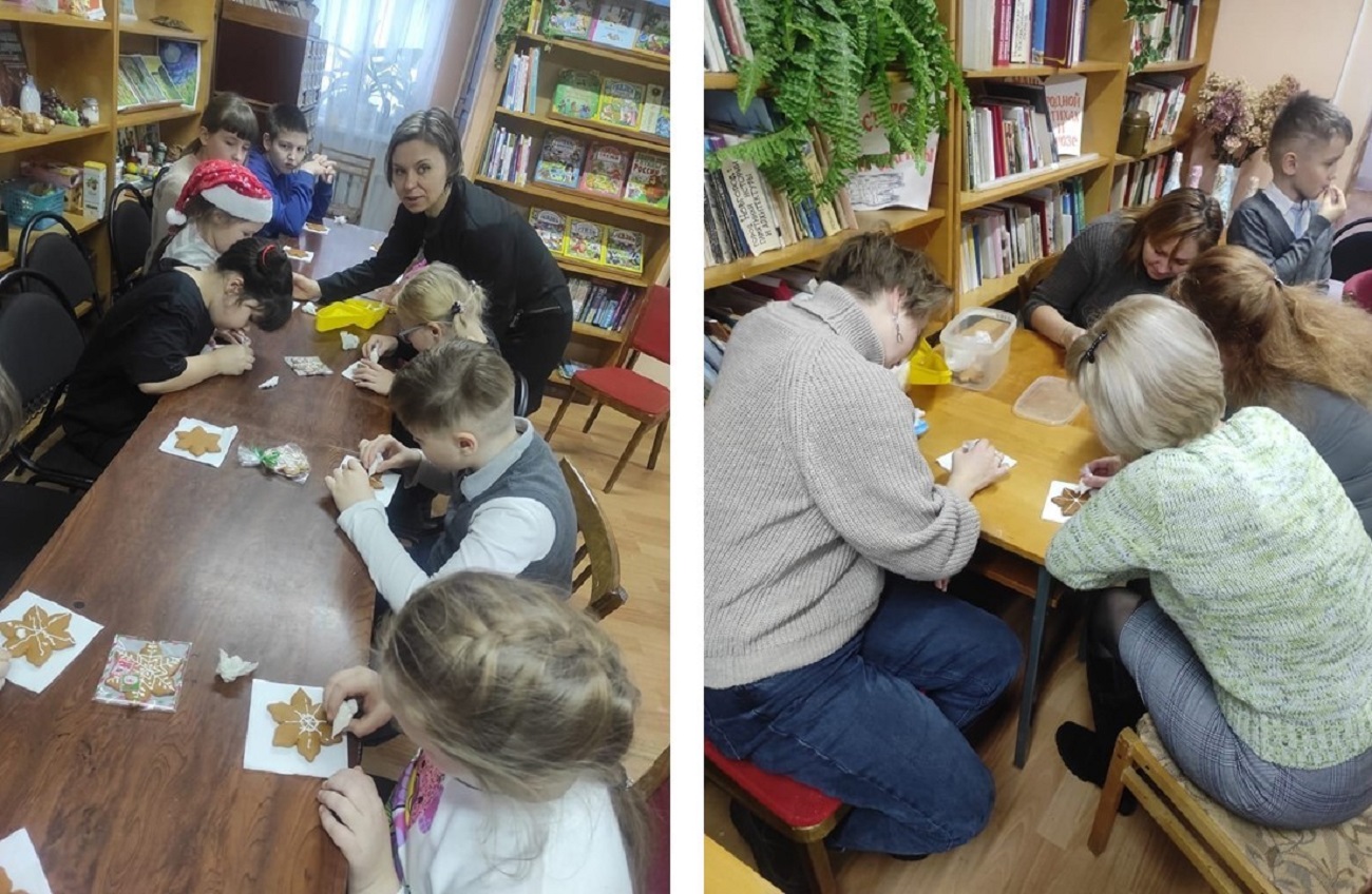 Вот и в прошедшее воскресенье в рамках проведения марафона «Рождественский подарок» в библиотеке прошёл мастер-класс по росписи имбирных пряников.