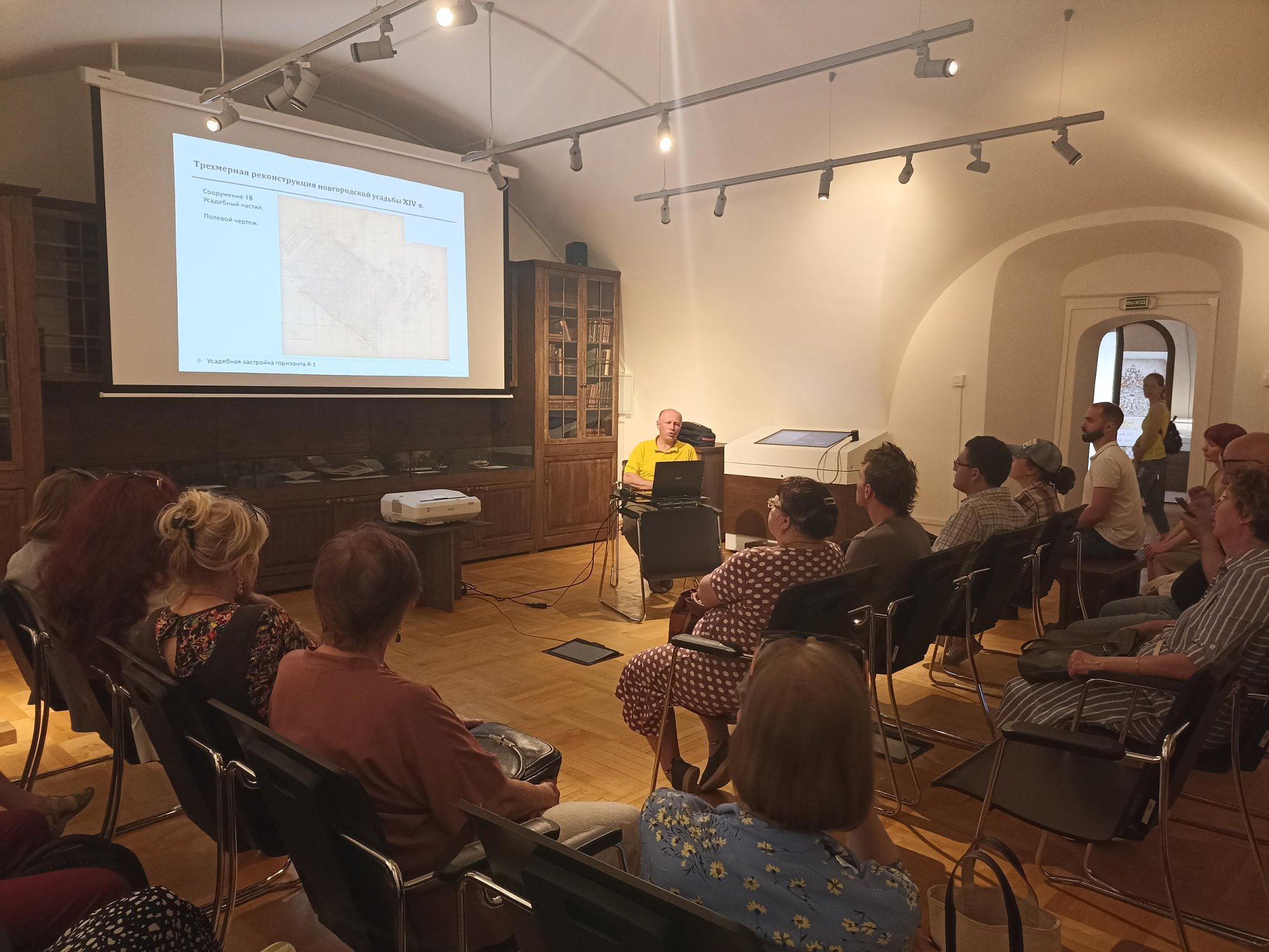 В Музее письменности состоялась публичная лекция «Из века ХХI в век XIV: средневековая новгородская усадьба из раскопа Дубошин-2». Старший научный сотрудник филиала «Центр археологических исследований» Новгородского музея-заповедника Михаил Петров рассказал, как исследованные в ходе археологических раскопок средневековых усадеб постройки и предметы преобразуются в 3D-модель, доступную для всех, кто интересуется историей Новгорода.
