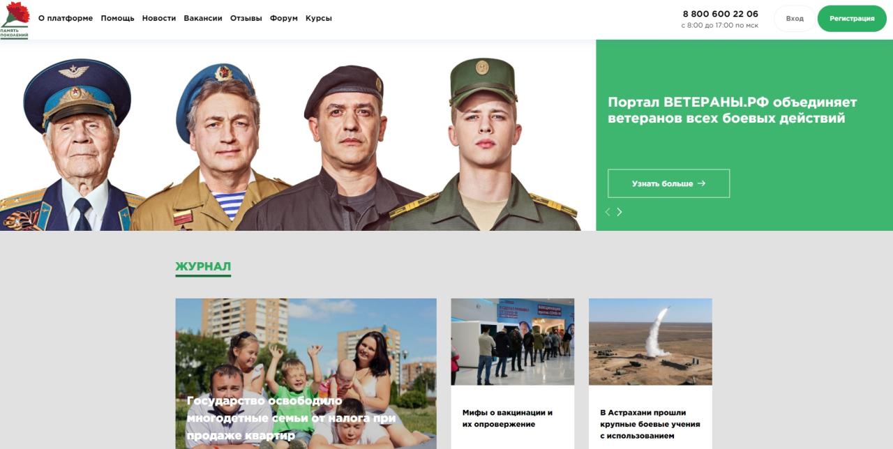 Онлайн-платформа "Ветераны.рф" для ветеранов боевых действий