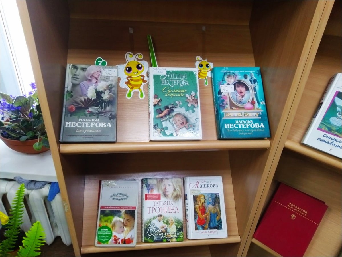 На выставке вас, дорогие читатели, ждут много увлекательных и уютных книг. Среди них романы авторства Маши Трауб . Трауб сама себя считает женой мужа и мамой двоих детей, которая ещё немножко пишет романы по ночам. Большая часть её творчества посвящена детям и семейным отношениям. На выставке вы найдете такие ее книги, как «Дневник мамы первоклассника», «О чем говорят младенцы», «Осторожно – дети! Инструкция по применению» и др.