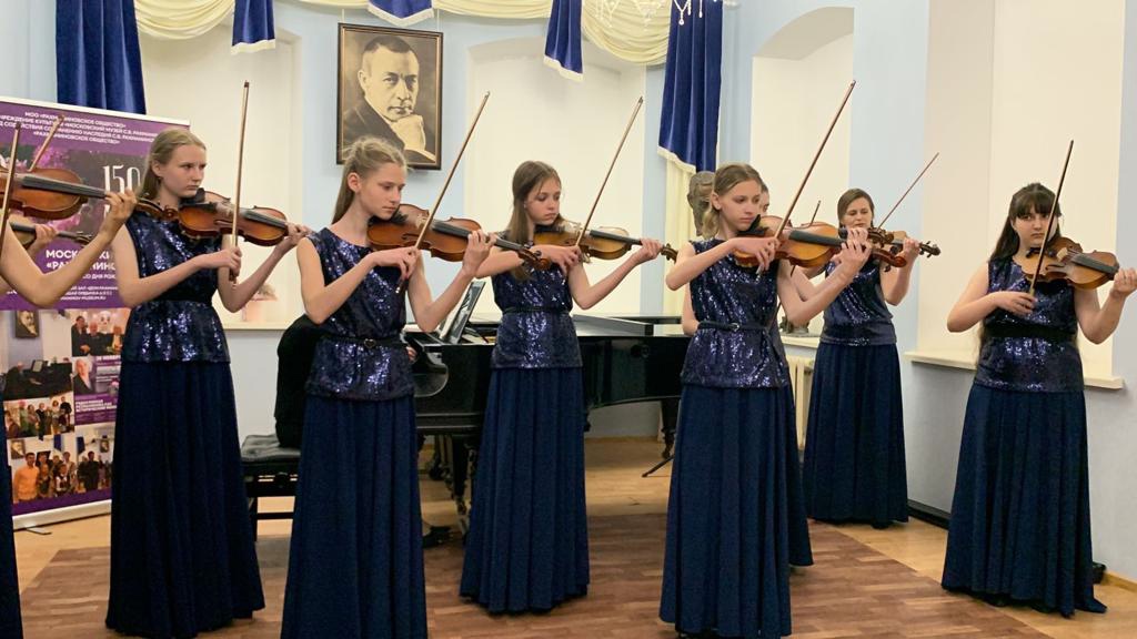 Ансамбль скрипачей из Старорусской детской школы искусств под управлением Ольги Степановой выступил в Москве на двух благотворительных мероприятиях, посвящённых 150-летию со дня рождения Сергея Рахманинова.