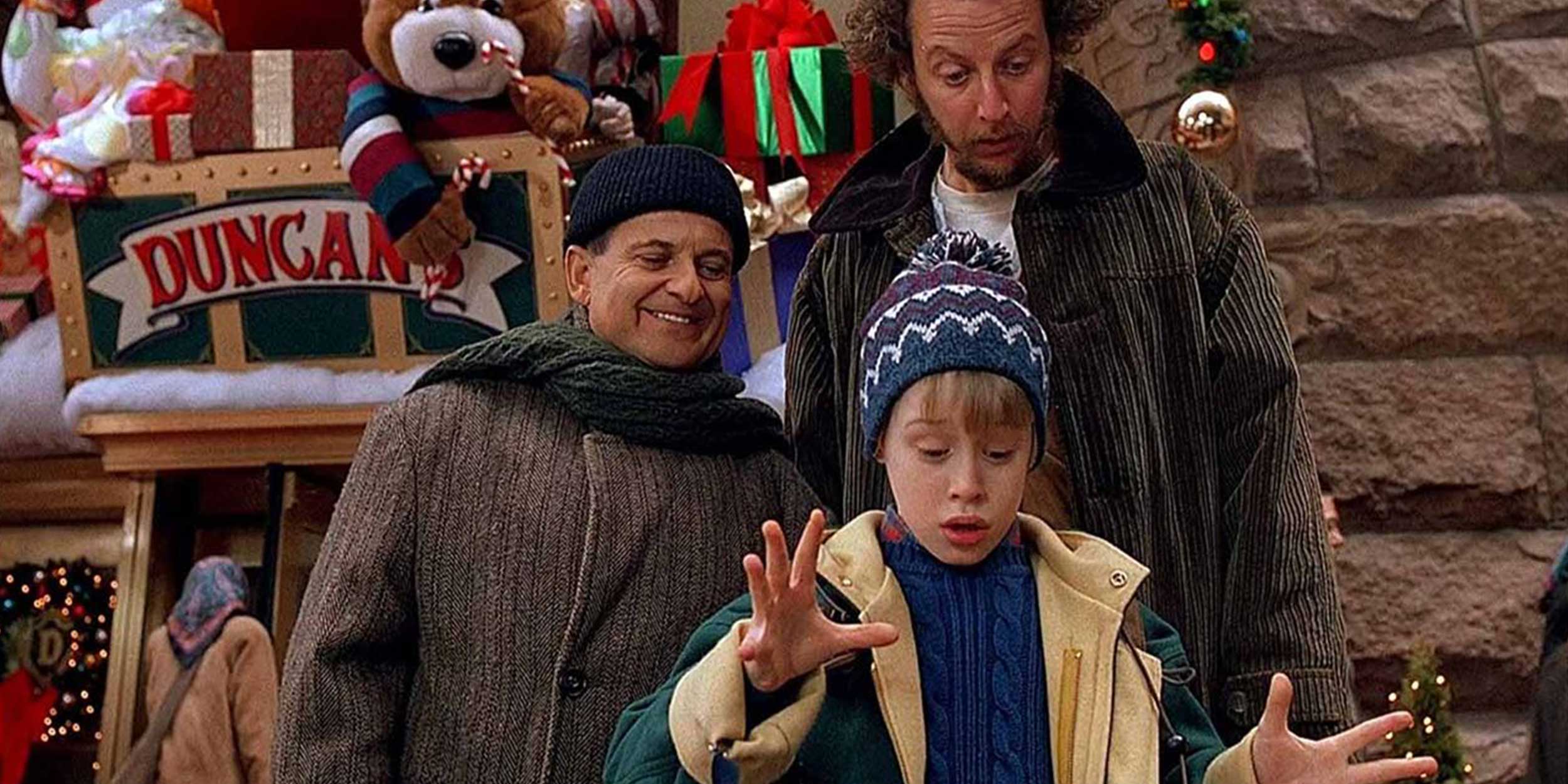 Этот фильм уже стал культовым и традиционным для просмотра в новогодние вечера. Маленький Кевин остаётся один в канун Рождества, в то время как его семья уехала встречать праздник в другой город. Перед их отъездом мальчик был крайне недоволен родителями, которые много ругали его, а теперь он может делать всё, что захочет, есть мороженое и конфеты, смотреть фильмы которые не мог раньше. Однако веселье длится недолго, его дом хотят обокрасть двое воров — Гарри и Марв,