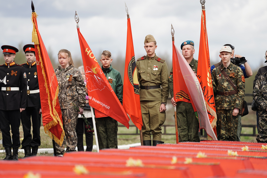 Сегодня, 8 мая, на воинском кладбище и мемориале в деревне Мясной Бор Новгородского района состоялась траурная церемония захоронения воинов, погибших в годы Великой Отечественной войны. Останки 443 бойцов, поднятых в ходе осенне-весеннего этапа Вахты Памяти поисковиками экспедиции «Долина», были преданы земле. Установлены имена 20 красноармейцев.