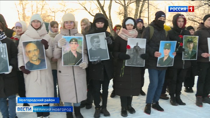 У мемориального комплекса в поселке Панковка Новгородского района прошёл митинг "Слава защитникам отечества". Вспоминали и героев Великой Отечественной войны, и бойцов российской армии, погибших в ходе специальной военной операции. Их портреты держали люди, собравшиеся у мемориала.