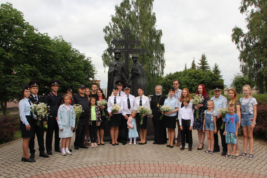 © Пресс-служба УМВД России по Новгородской областиСемейные пары сотрудников органов внутренних дел из различных подразделений Управления МВД, а также УМВД России по Великому Новгороду и межмуниципального отдела МВД России «Новгородский» встретились возле памятника Петру и Февронии Муромским, которые почитаются всеми православными как покровители семьи, верности и любви.
