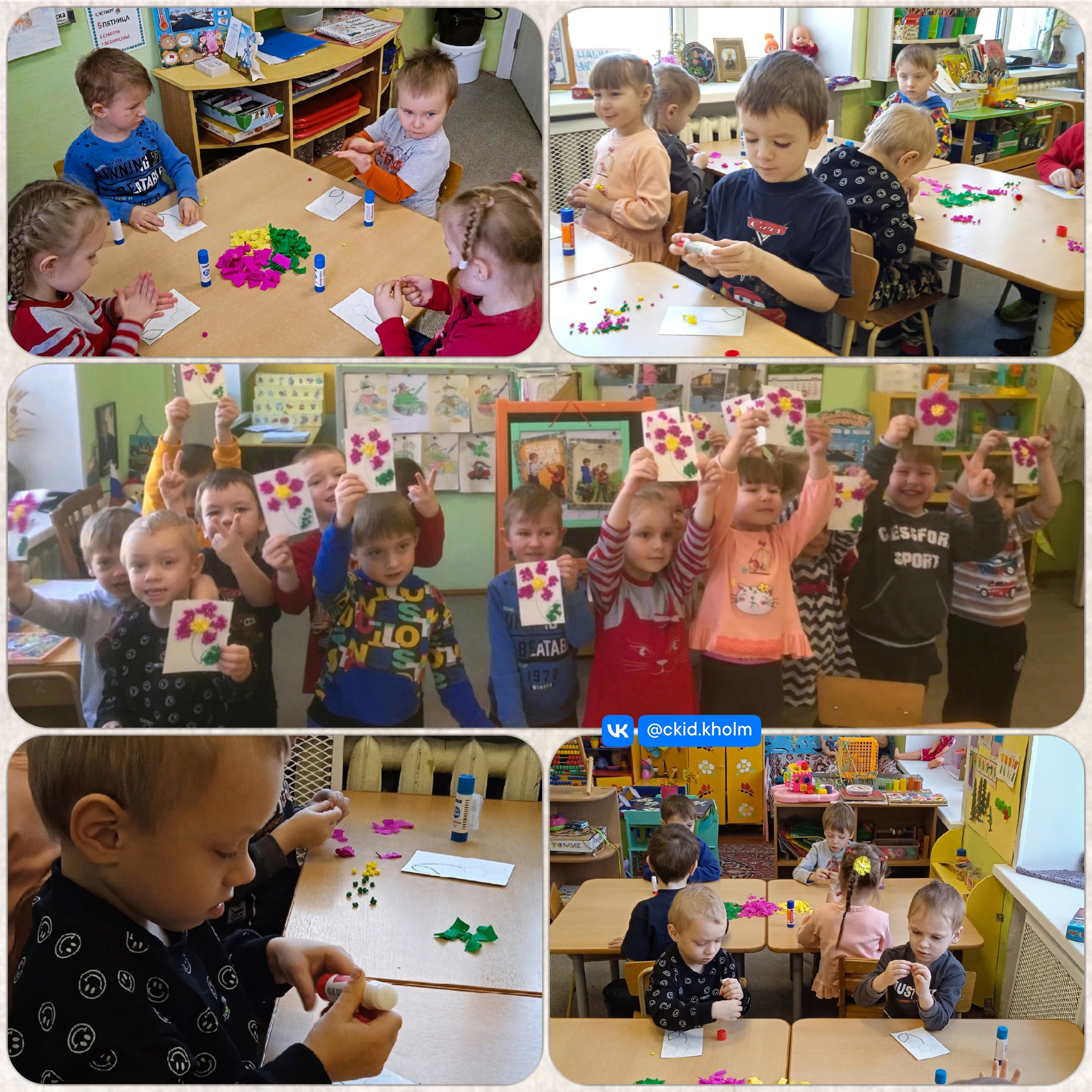 #ДНТ_Холм #Творчество_дети 10 марта для воспитанников детского сада "Радуга" методисты ДНТ подготовили и провели мастер-класс по изготовлению панно "Весенний цветок" из гофрированной бумаги.
