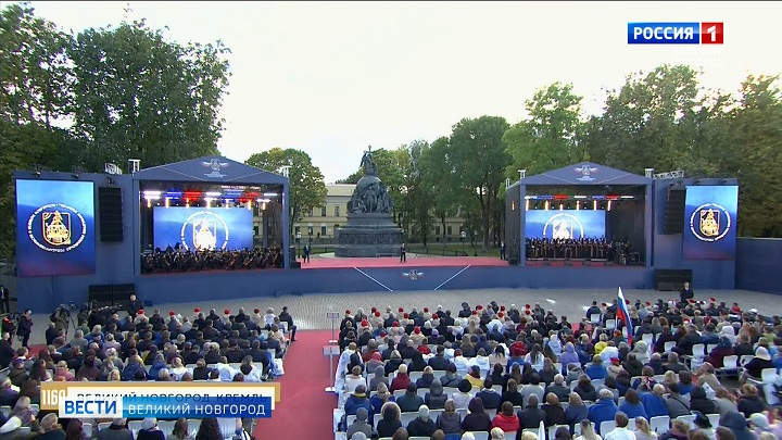Ключевым событием концерта, разумеется, стало появление Президента. Выступая на фоне памятника "Тысячелетие России" Владимир Путин вспомнил о многих выдающихся деятелях страны, которые на нем отлиты в бронзе, и не только о них. За последние 160 лет наша Россия подарила миру еще множество великих имен: Брусилов и Деникин, Жуков и Рокоссовский, Курчатов, Королев, Гагарин. Вспомнил Владимир Путин и героев нашего времени. Сейчас они и защищают суверенитет страны в ходе специальной военной операции.