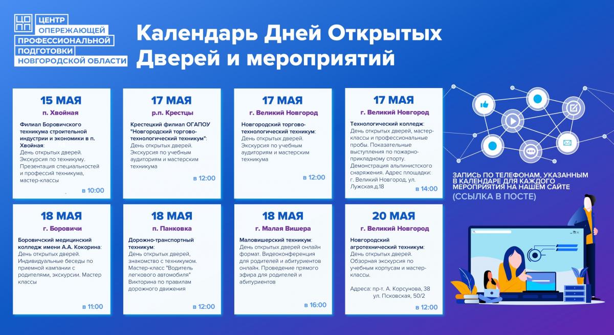 Подробнее о проведении мероприятий узнавайте на сайте Центра опережающей профессиональной подготовки Новгородской области: https://copp53.ru/calendar/