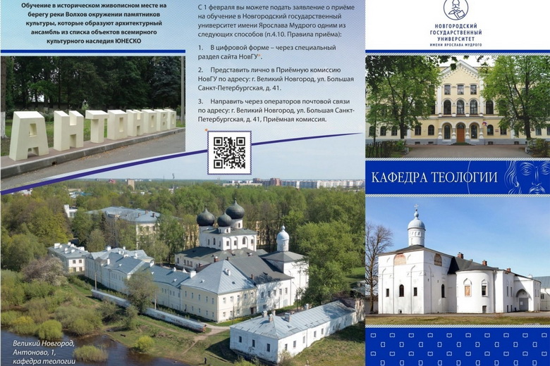 В новом учебном году кафедра Теологии НовГУ ждёт студентов на бакалаврскую и магистерскую программу: бакалавриат по профилю «Теология и традиционные ценности в системе воспитания» и магистратура по профилю «Православная культура в современном образовании».