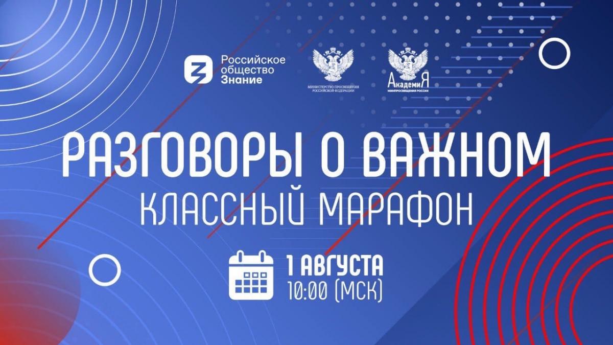 Очередной выпуск «Классного марафона» состоится 1 августа в 10:00 часов на площадке Российского общества «Знание» во Владивостоке. Проект Академии Минпросвещения России нацелен на подготовку классных руководителей и кураторов групп организаций среднего профессионального образования к проведению с нового учебного года внеклассных занятий «Разговор о важном» во всех образовательных организациях страны.