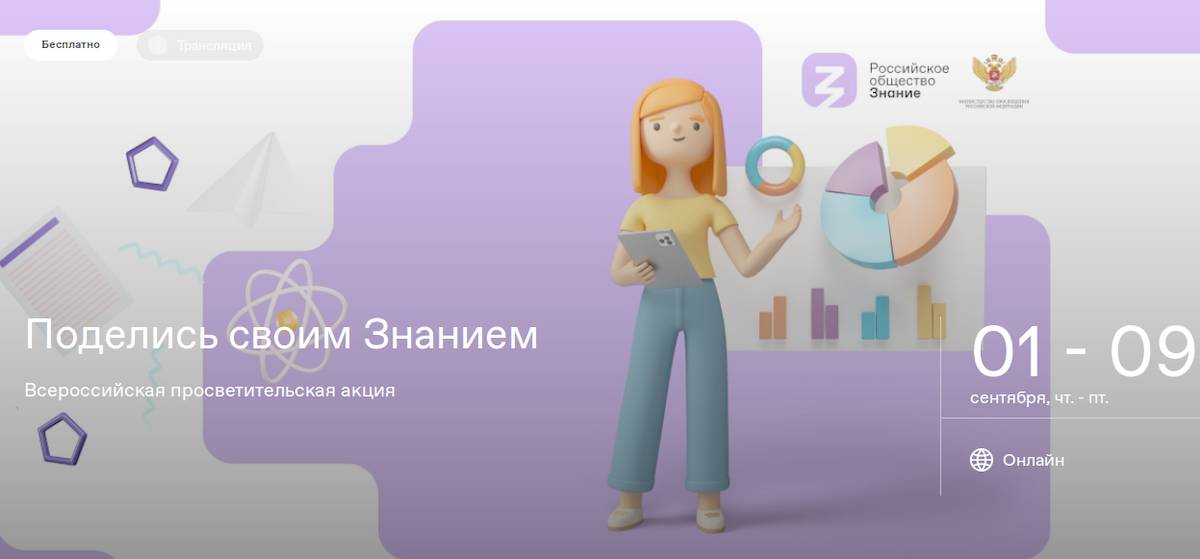 С 1 по 9 сентября пройдёт всероссийская просветительская акция «Поделись своим знанием», организованная при поддержке министерства просвещения РФ и министерства науки и высшего образования РФ.