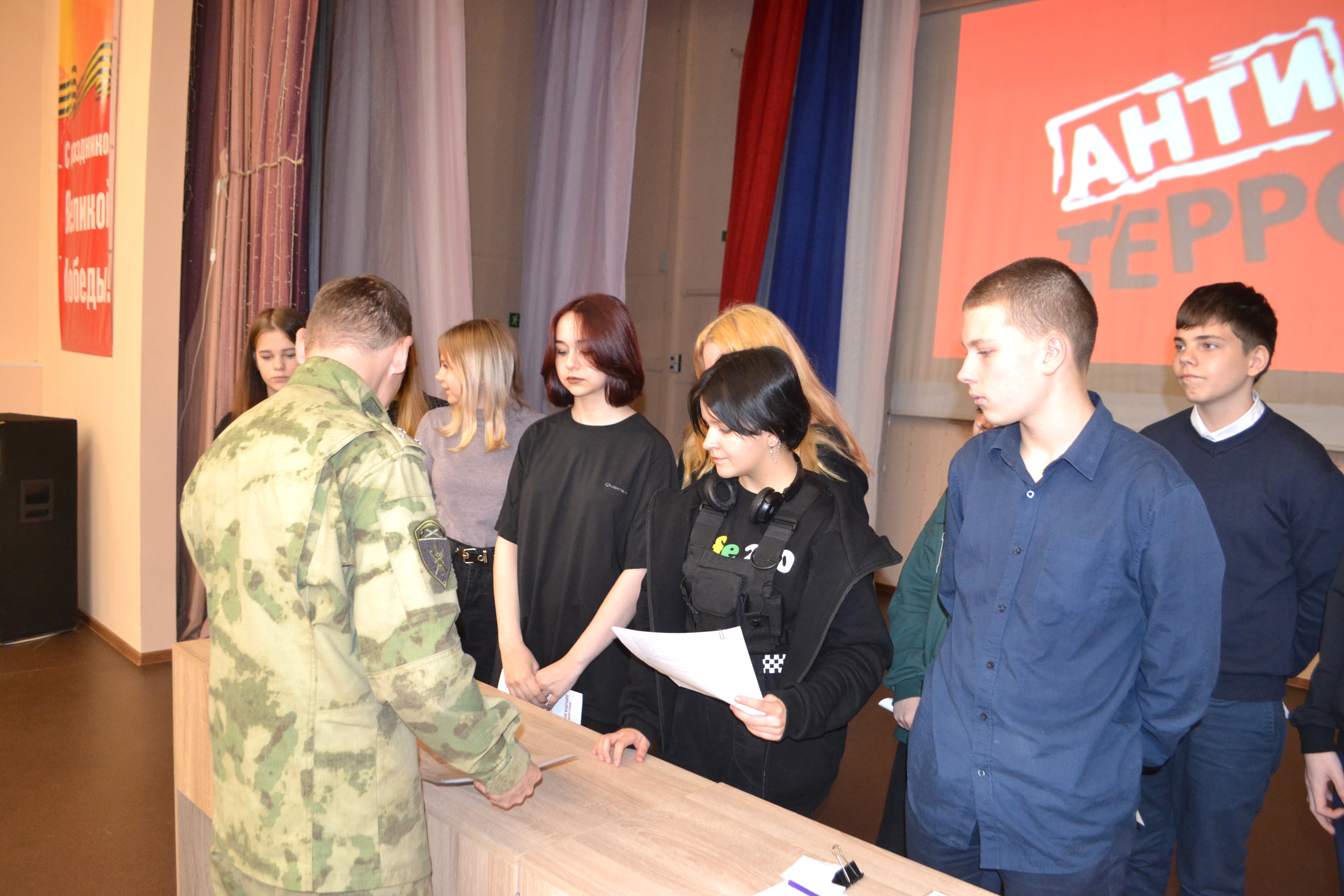 Новгородские росгвардейцы в игровой форме напомнили старшеклассникам о бдительности и осторожности