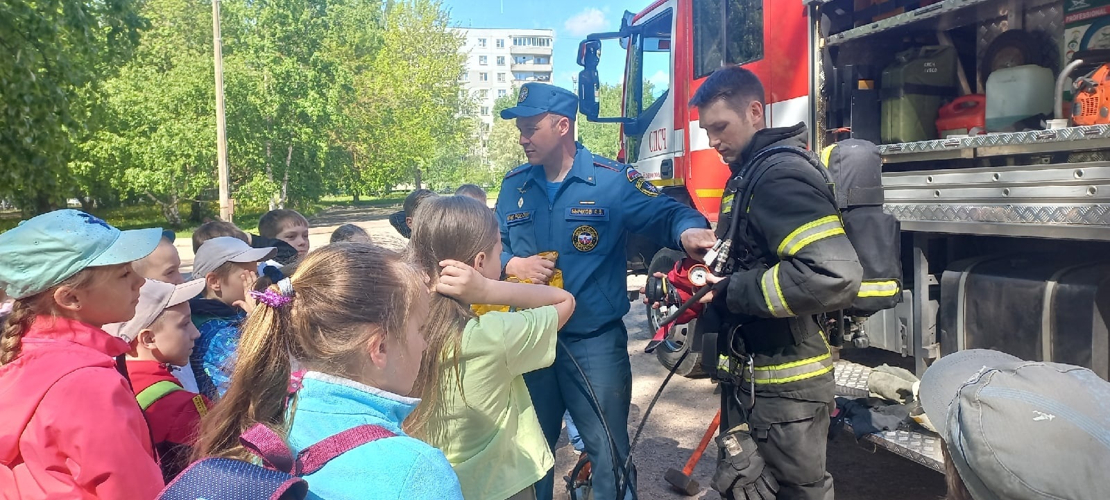 Ребята с восторгом изучали обмундирование и технику огнеборцев, осваивали гидроскутер ГИМС и пробовали себя в роли медика, оказывая первую медицинскую помощь. В конце встречи воспитанники школьного лагеря пообещали пожарным, что будут соблюдать все правила и проведут лето без неприятностей.