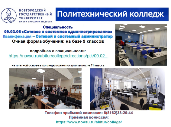 Специальность "Сетевое и системное администрирование" в Политехническом колледже НовГУ