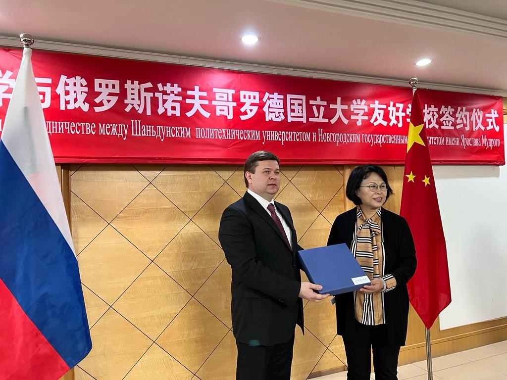 Сегодня делегация находится в городе-побратиме Великого Новгорода Цзыбо, провинция Шандунь. В ходе визита ректор Новгородского университета заключил соглашение о сотрудничестве с Шаньдунским Политехническим университетом. Соглашение предусматривает сотрудничество сторон для подготовки кадров в сфере биомедицины, машиностроения, сельскохозяйственной инженерии, кибербезопасности, моделирования полимеров, автоматизации и смежных специальностей.