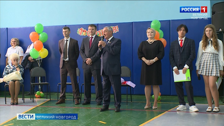 А в классах ребят ждали учебники и небольшие подарки. Атмосферу праздника дополняли шары и цветы, подготовленные для учителей. А ещё поздравить всех с Днём Знаний пришли почётные гости. Председатель Новгородской областной думы Юрий Бобрышев давно дружит с коллективом этого учебного учреждения.