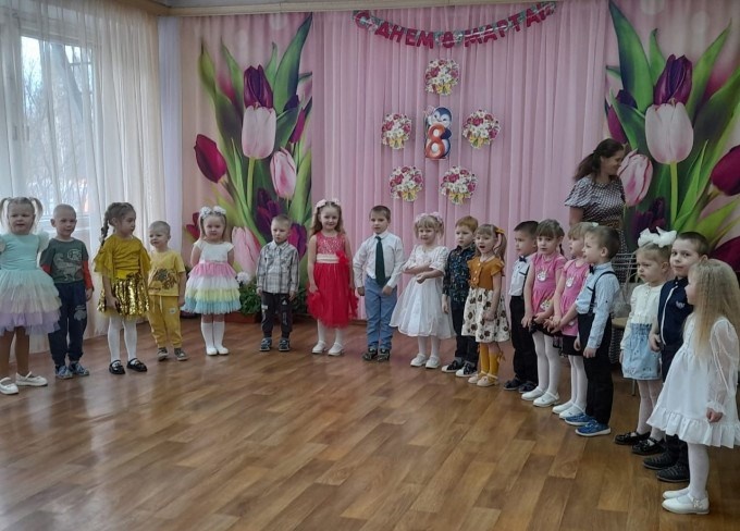 Предпраздничная неделя в детских садах была посвящена торжественным мероприятиям, посвященным Международному женскому дню. Подготовка началась задолго до наступления праздника. Воспитатели с детьми разучивали стихотворения, проводили беседы, репетировали сценки, вместе с музыкальным руководителем разучивали песни и танцы.