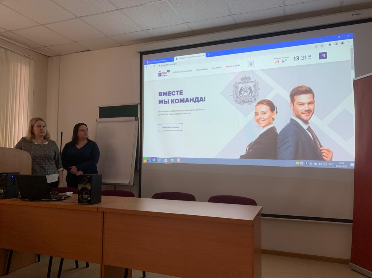 Специалисты Управления администрации рассказали о возможности прохождения стажировки и практики в органах исполнительной власти Новгородской области, что вызвало живой интерес у студентов.