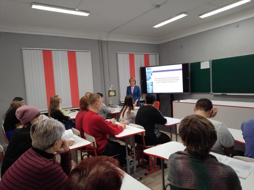 В средних школах района на этой неделе прошли встречи с родителями и обучающимися 11 классов с участием заместителя председателя комитета образования Н.С. Евдокимовой по вопросам организации и проведения государственной итоговой аттестации обучающихся по программам среднего общего образования.