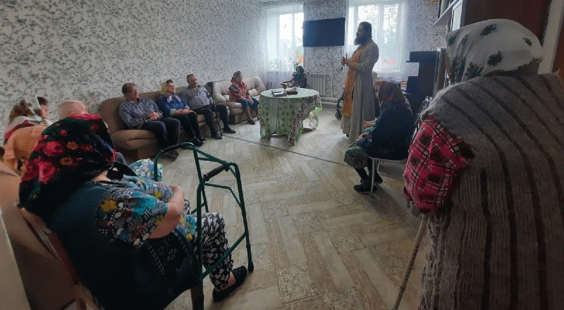 Ежемесячно стационарное отделение социального обслуживания граждан посещает отец Артемий, что благоприятно влияет на душевное равновесие проживающих.