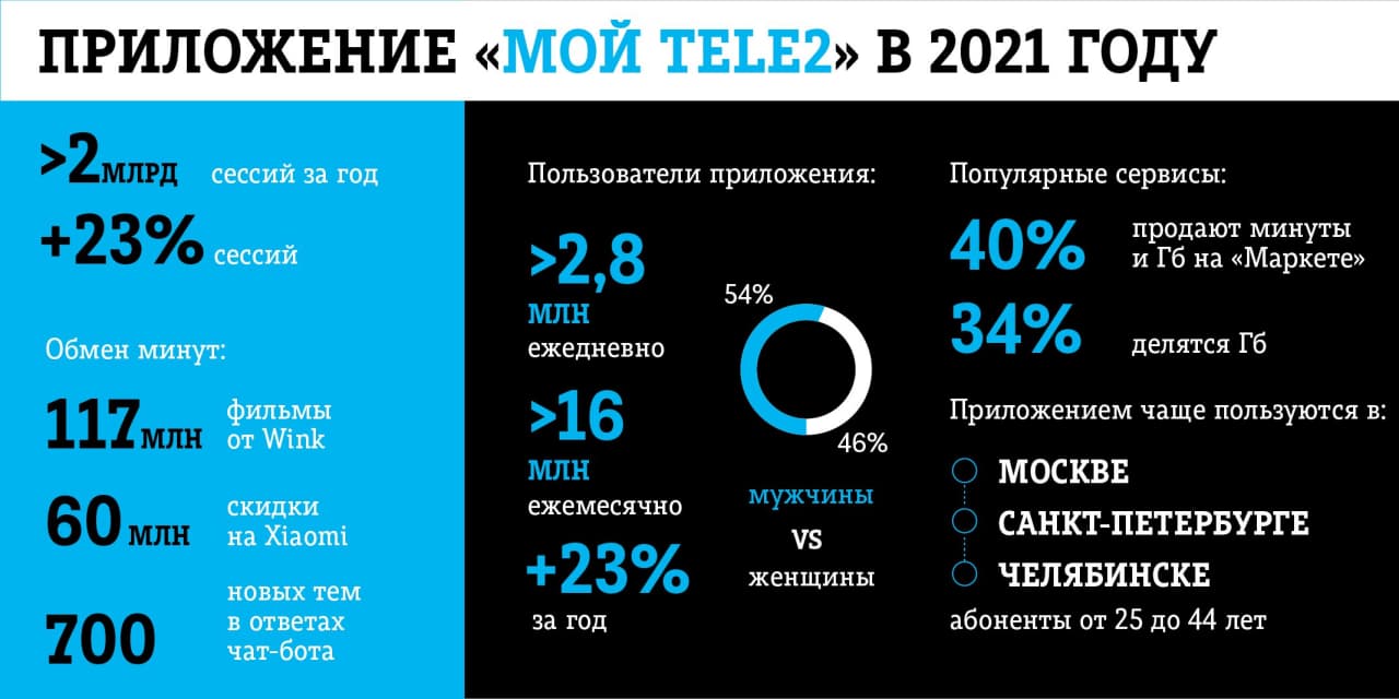 Tele2, альтернативный оператор мобильной связи, подвел итоги работы приложения «Мой Tele2».