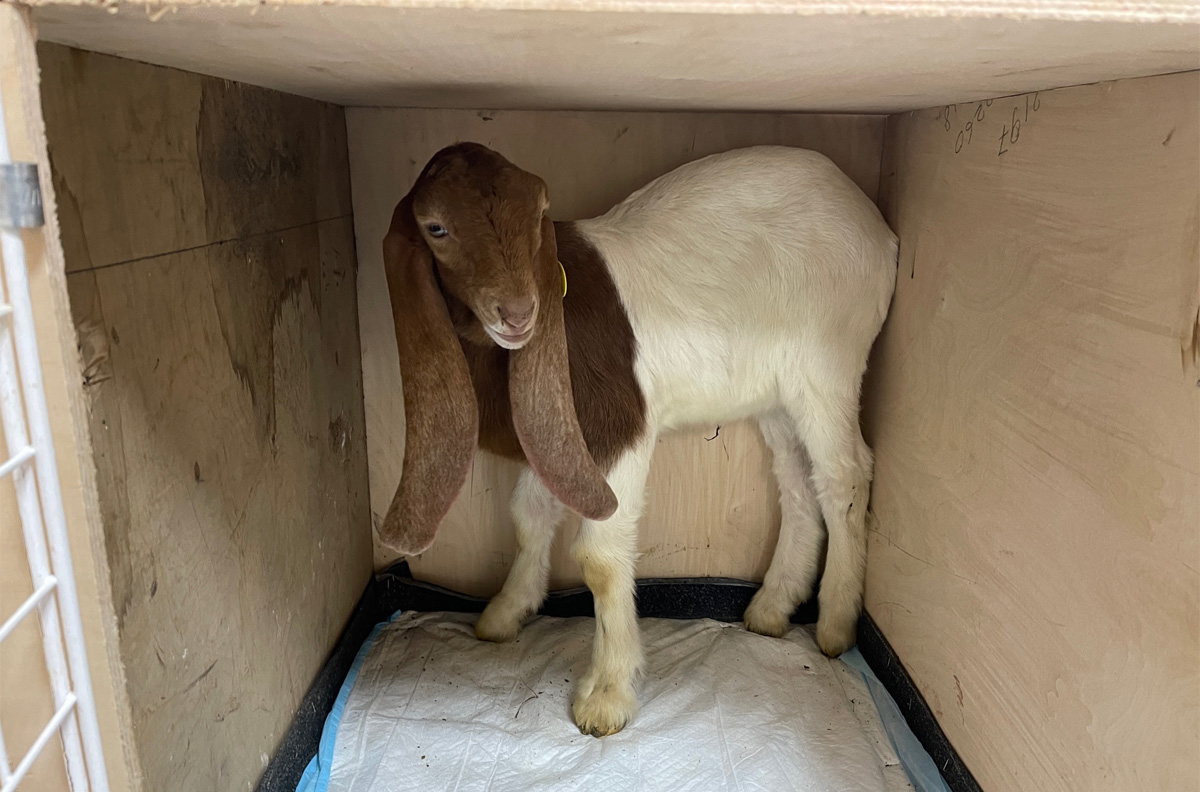 В грузовом терминале аэропорта Пулково должностным лицом Северо-Западного межрегионального управления Россельхознадзора был проведён ветеринарный контроль козы породы камори.