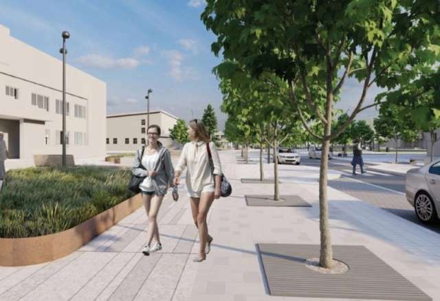 На улице планируется проложить ливневую канализацию, заменить дорожное покрытие, установить освещение, систему видеонаблюдения, амфитеатр, детские и спортивные площадки, а также арт-объекты «Кольца», «Скрипичный ключ» и «Часы» с часовым механизмом.