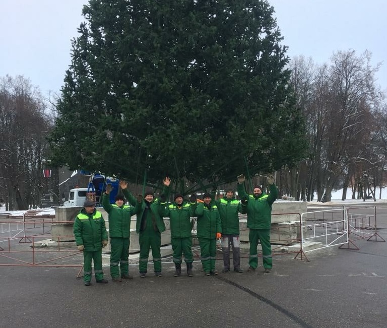 Монтаж ёлки на площади Победы-Софийской в Великом Новгороде завершён. Об этом сообщили специалисты «Городского хозяйства» на странице организации «Вконтакте».