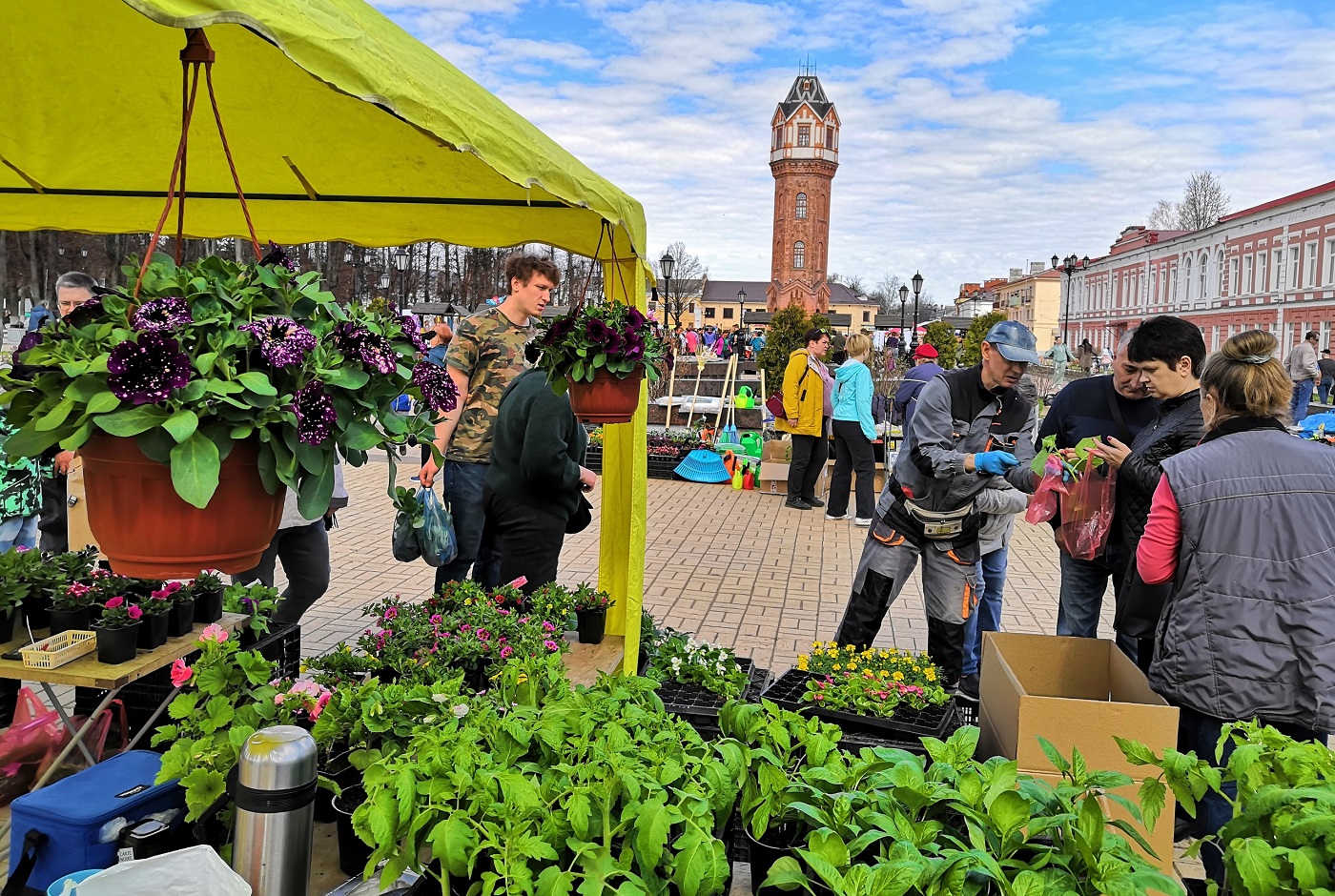 В Старой Руссе достаточно много собственных фермерских хозяйств и индивидуальных предпринимателей, которые специализируются на торговле садовыми растениями и инвентарём для работы в саду и огороде. И их продукция неизменно пользуется спросом у жителей района, каждый второй из которых имеет или грядку рядом с домом, или участок за городом. Но сегодня выбор, что купить, у старорусских дачников был особенно велик, так как торговать на ярмарку приехали предприниматели и производители сельхозпродукции из соседних со Старой Руссой районов, из Псковской, Ленинградкой, Вологодской и Ростовской областей. К прилавкам с семенами выстроилась очередь, быстро раскупался и пророщенный картофель.