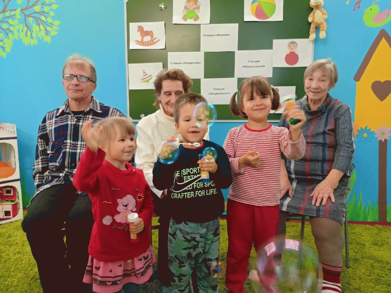 В преддверии Дня пожилого человека в отделении социального приюта прошло совместное мероприятие воспитанников отделения и проживающих стационарного отделения. Участники совершили путешествие в страну детства. Самые светлые, чистые и добрые воспоминания у каждого из нас связаны с детством – временем, когда мир вокруг кажется огромным, небо – безоблачным, когда искренне веришь в чудо, и радуешься каждому дню. Звонкий смех, счастливые лица мальчишек и девчонок, пожилых людей - такая оживленная атмосфера царила на мероприятии. И закончилось наше путешествие развлечением с мыльными пузырями.