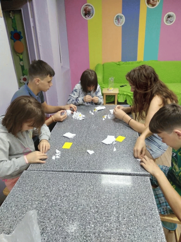 Воспитанники отделения социального приюта решили познакомиться с техникой "Модульное оригами". Изготовление треугольных модулей.