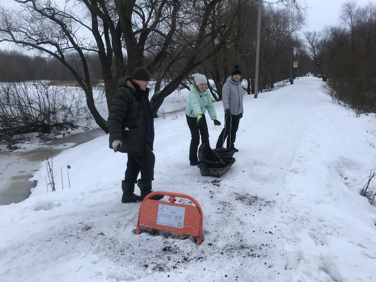 В парке «Красное поле» с гололедицей пытаются бороться с помощью кофейной гущи.