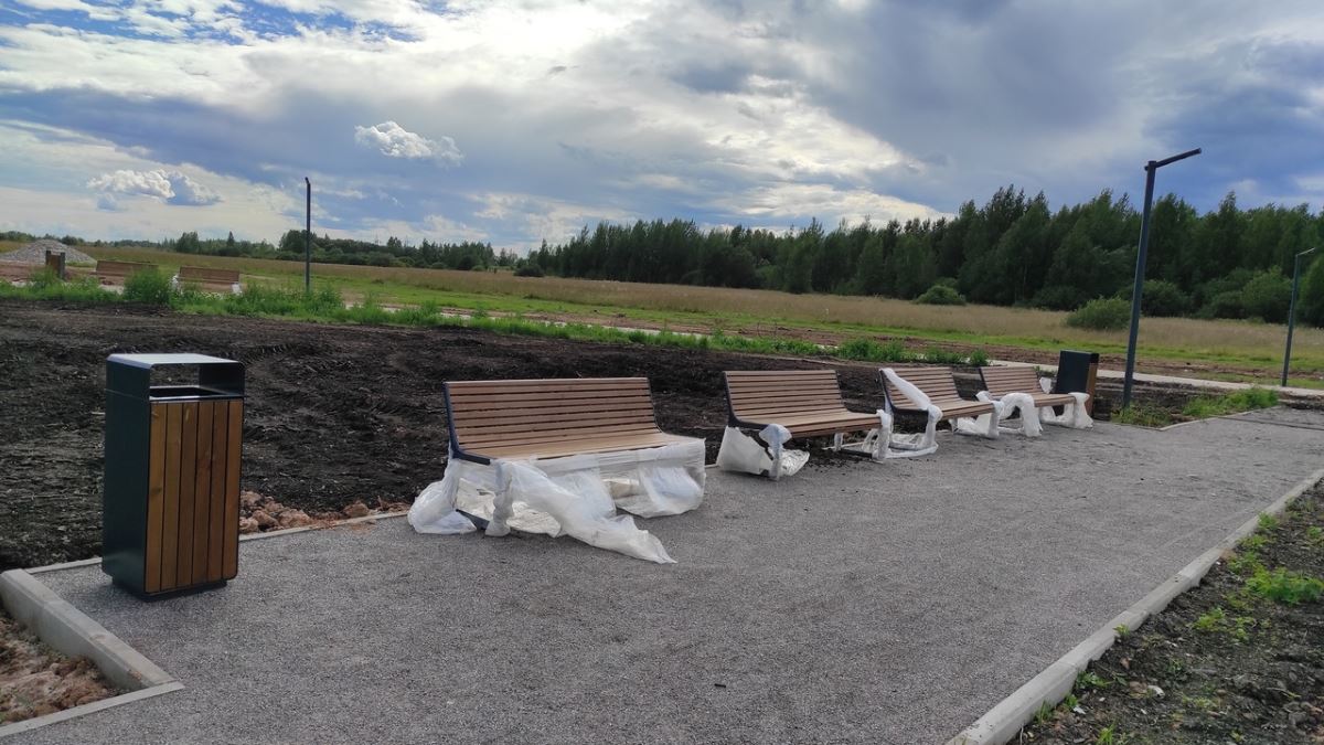 Близится завершение работ. Скамейки с урнами после подготовки основания вскоре займут назначенные им места.