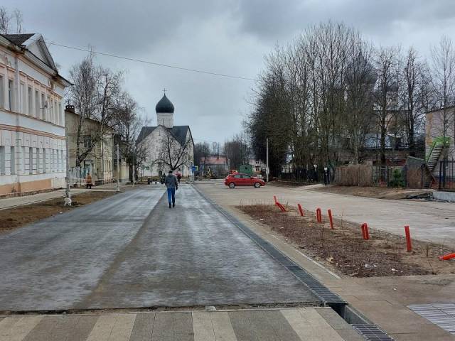 Строительная готовность улицы составляет 80-85 процентов. Фотография ©: Пресс-центр администрации Великого Новгорода Компания «СМУ-57» возобновили реконструкцию Ильиной улицы в Великом Новгороде,