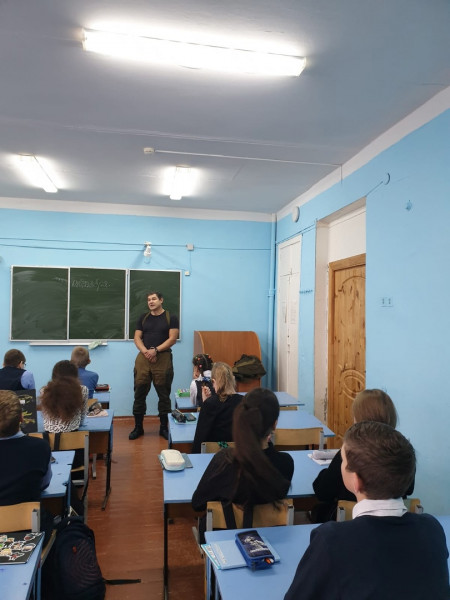 10 октября в 6-м классе школы № 1 в Сольцах в рамках занятий «Разговоры о важном» прошел урок на тему «День отца». На него был приглашён ветеран боевых действий на Северном Кавказе, руководитель Солецкого районного отделения «БОЕВОГО БРАТСТВА» Виталий Савинов. Разговор пошел о мужчинах, отцах и воинах.