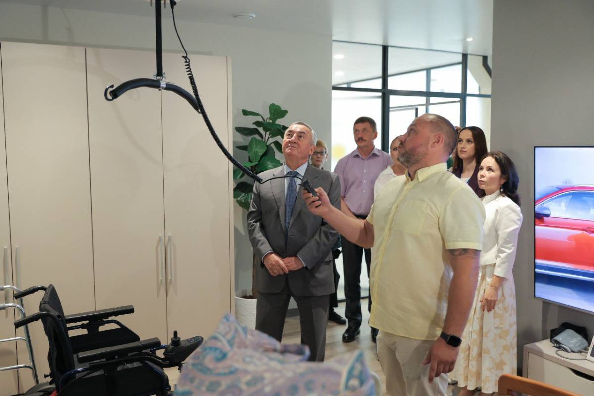 Заместитель Секретаря регионального отделения партии «Единая Россия», председатель Новгородской областной Думы Юрий Бобрышев оценил работу учреждений. Он осмотрел демонстрационную квартиру, кабинет психолога, библиотеку и другие помещения. Для оказания комплексной помощи воинам на территории центра также организованы рабочие места специалистов центра срочной социальной помощи, МФЦ, центра выплат, центра занятости, медико-социальной экспертизы, юридического бюро и налоговой службы. Для посетителей с детьми открыта детская комната и уличная игровая площадка. Сейчас разрабатывается порядок приобретения средств реабилитации, которые находятся в демонстрационной комнате.